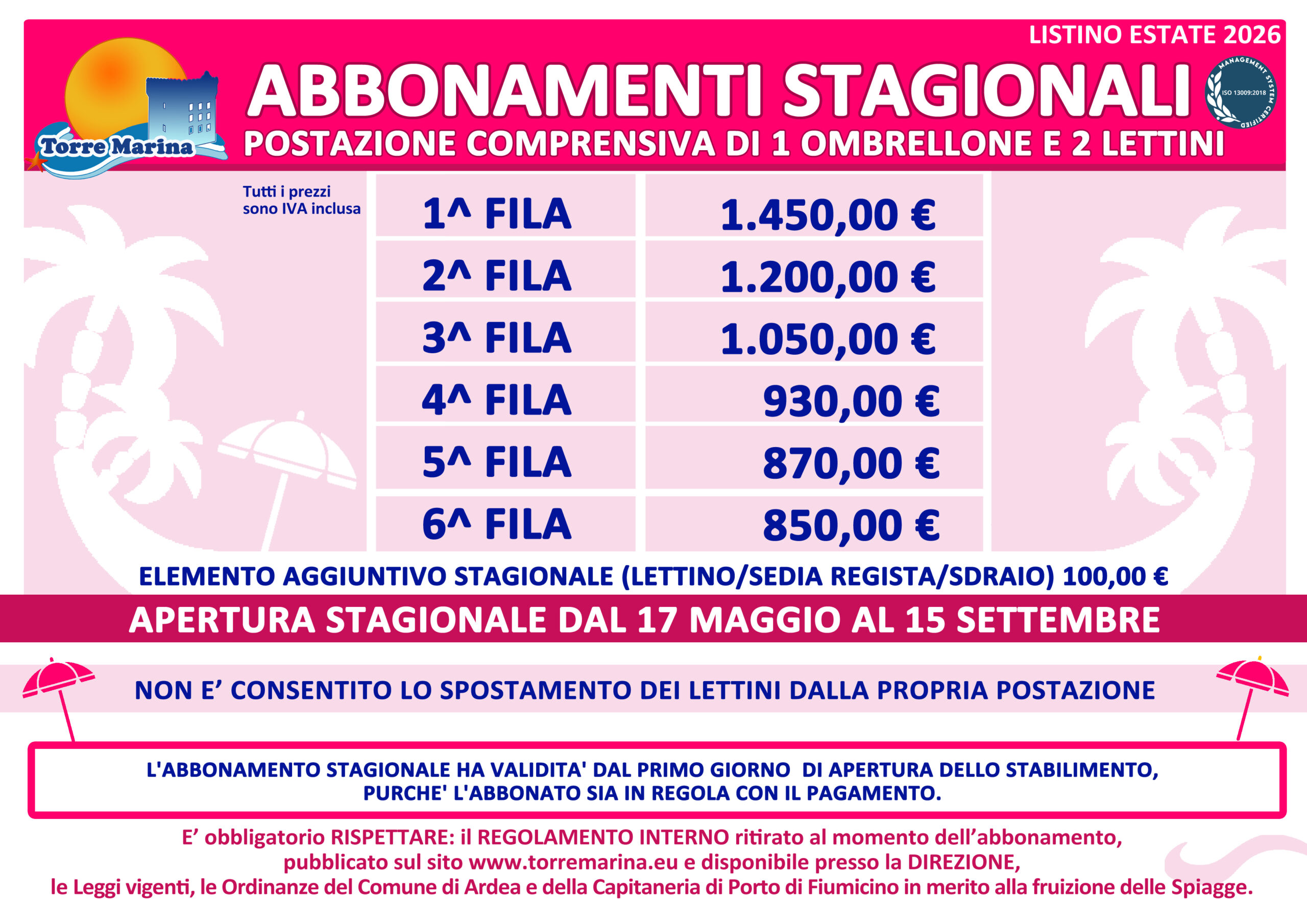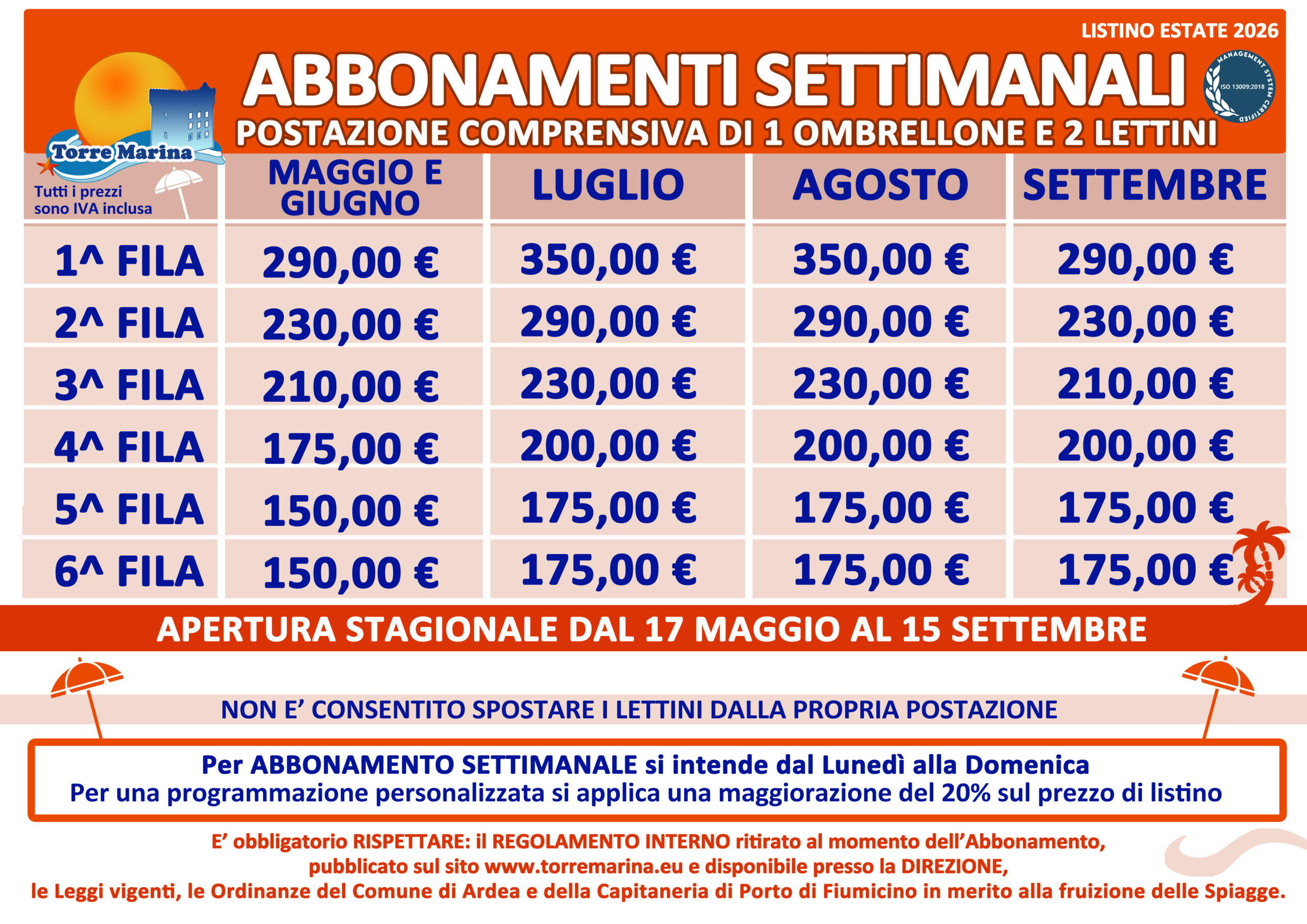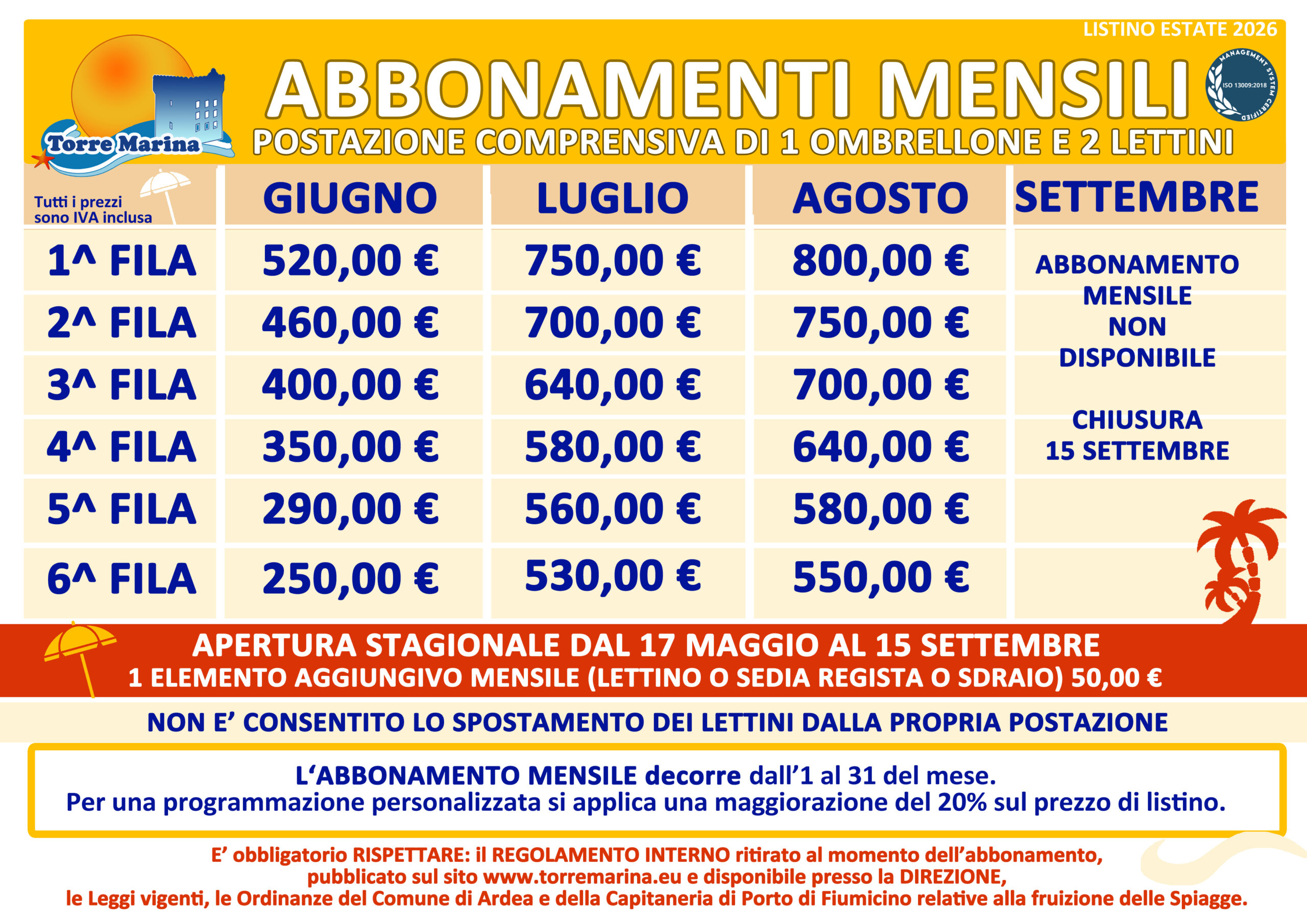 Anche quest’anno Torre Marina srl ha riservato ai propri Soci un listino speciale per gli abbonamenti stagionali 2026. Fino al 6 Aprile i Soci potranno…