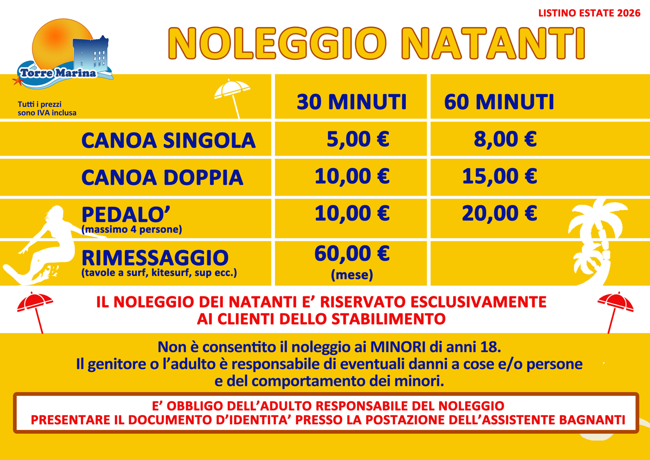 La Società Torre Marina srl è lieta di comunicare alla clientela che a partire da Sabato 21 Marzo 2026 la Segreteria dello Stabilimento sarà aperta…